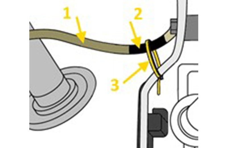 - Apvynioti laidą (poz. 1) izoliavimo juosta (poz. 2).